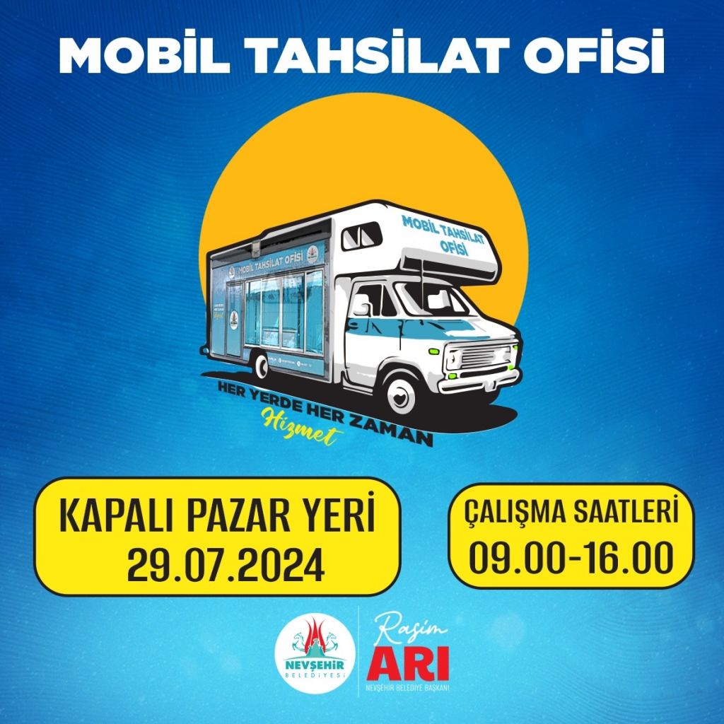 Nevşehir Belediyesi Mobil Tahsilat Ofisi, 29 Temmuz 2024 Pazartesi günü Kapalı Pazar Yeri’nde hizmet verecek. Nevşehir Belediyesi tarafından geçtiğimiz haftalarda uygulamaya konulan ve vatandaşlara büyük kolaylık sağlayan Mobil Tahsilat Ofisi, şehrin farklı noktalarında hizmet vermeyi sürdürüyor. Vatandaşların, Emlak, Çevre Temizlik, İlan ve Reklam Vergisi, Su Faturası ve diğer belediye ile ilgili ödemelerini belediyeye gelmeden yerinde, […]