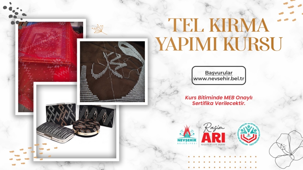 Nevşehir Belediyesi Gençlik ve Spor Hizmetleri Müdürlüğü KAPEM bünyesinde “Tel Kırma Yapımı Kursu” açılacak. Nevşehir Halk Eğitim Merkezi ile ortak yürütülecek Tel Kırma Yapımı Kursu hafta içi her gün 09.00-12.00 saatleri arasında düzenlenecek. 18 yaş ve üzeri kursiyerlerin katılabileceği kursu tamamlayan vatandaşlara Milli Eğitim Bakanlığı MEB onaylı sertifika verilecek. Kurs süresince uygulamalı sosyal etkinlik faaliyetleri gerçekleştirilecek. […]