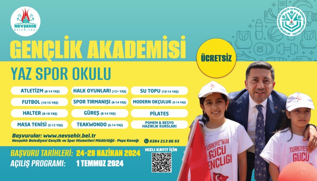 Nevşehir Belediyesi tarafından 16 farklı branşta Yaz Spor Okulları açılıyor. Çocukların ve gençlerin spor yapmasını sağlamak, spor bilinçlerini geliştirmek, yaz tatillerini verimli hale getirmek ve geleceğin sporcularını bulup yetiştirmek için Nevşehir Belediyesi Gençlik ve Spor Hizmetleri Müdürlüğünce Yaz Spor Okulları açılacak. Deneyimli spor eğitmenleri gözetiminde 7-14 yaş arası KAY KAY, 10-15 aş arası FUTBOL, 12 […]