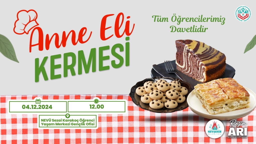 Nevşehir'de ihtiyaç sahibi üniversite öğrencilerine destek olmak amacıyla 04 Aralık 2024 Çarşamba günü gelirleri öğrencilere verilecek “Anne Eli Kermesi” yapılacak. Nevşehir Belediyesi tarafından ihtiyaç sahibi üniversite öğrencilerine destek sağlamak amacıyla daha önce birkaç defa düzenlediği kermes etkinliğini tekrar yapacak. “Anne Eli Kermesi” etkinliği, 04 Aralık 2024 Çarşamba günü Nevşehir Hacı Bektaş Veli Üniversitesi’nde düzenlenecek. Nevşehir […]